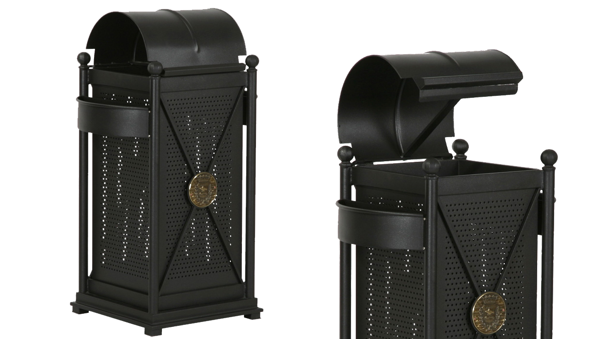 Η δομή του αποτελείται από ένα πλαίσιο τετράγωνου σχήματος κατασκευασμένο από γαλβανισμένο χαλύβδινο διάτρητο φύλλο που στη βάση του φέρει τέσσερα ποδαράκια που εμποδίζουν την άμεση επαφή με το έδαφος, ενώ στην κορυφή του φέρει ένα κυλινδρικό καπάκι που με τη χρήση μεντεσέδων ανοίγει για το άδειασμα του κάδου. Οι δύο απέναντι πλευρές φέρουν σταχτοδοχεία. Μέσα στο πλαίσιο υπάρχει κάδος του οποίου η βάση είναι διάτρητη με σκοπό την αποστράγγιση των όμβριων υδάτων.
