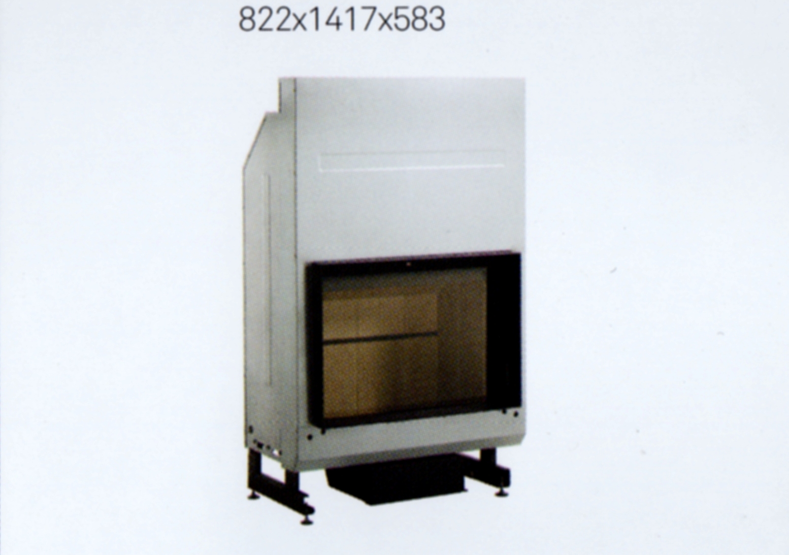 Imported energy fireplace Spanish Rocal air heater model Gfn 450 Monobloc Its maximum power is 20Kw/h, its nominal power is 14KW/h, it can heat a space of 150m2 or 400m3. It has doors that open and disappear sliding upwards The combustion space is lined with special fire-resistant plates to raise the temperature of the combustion chamber with the result that the flue gases produced during the combustion also burn, thus reaching extremely high efficiencies of 80%. It has special slots in the door frame that create an air curtain and so we have a very clear view of the combustion