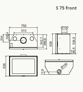S75 FRONTModel: InsertType: Wood firesOutput: 9.0 kWEfficiency: 77.7%