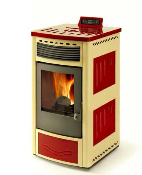 Σόμπα Pellet στενή με μεγάλο κρύσταλλο,, για να φαίνεται όμορφα  η καύση, εξαιρετικής απόδοσης 12,4 KW, κλασσικής σχεδίασης και αισθητικής, με στρογγυλεμένες γωνίες, ικανή να ζεστάνει χώρους εως 100 τμ,  μεταφέρει τον παραγώμενο ζεστό αέρα σε όλα τα δωμάτια του σπιτιού  και  με  δυνατότητα μεταφοράς μέσω αεραγωγού,  μαντεμένιο καυστήρα καύσης.   Εκπομπή διοξειδίου του άνθρακα - max 0,02%. Με τηλεκοντρόλ .Ημερήσιος και εβδομάδιαίος Προγραμματισμός .  Έξοδο πάνω και πίσω.