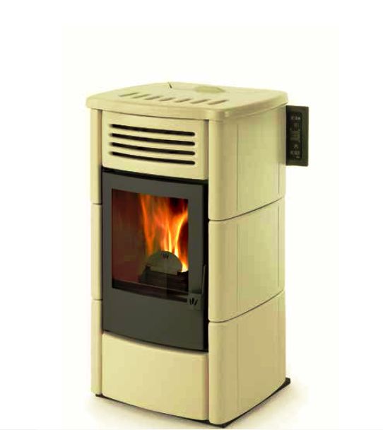 Σόμπα Pellet στενή με μεγάλο κρύσταλλο,, για να φαίνεται όμορφα  η καύση, εξαιρετικής απόδοσης 12,4 KW, κλασσικής σχεδίασης και αισθητικής, με στρογγυλεμένες γωνίες, ικανή να ζεστάνει χώρους εως 100 τμ,  μεταφέρει τον παραγώμενο ζεστό αέρα σε όλα τα δωμάτια του σπιτιού  και  με  δυνατότητα μεταφοράς μέσω αεραγωγού,  μαντεμένιο καυστήρα καύσης.   Εκπομπή διοξειδίου του άνθρακα - max 0,02%. Με τηλεκοντρόλ .Ημερήσιος και εβδομάδιαίος Προγραμματισμός .  Έξοδο πάνω και πίσω.