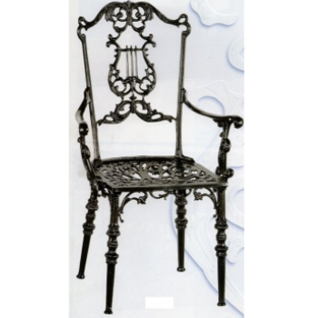 χυτή πολυθρόνα με ανάγλυφα σχέδια στην πλάτη άρπα στο κάθισμα και στα πόδια .