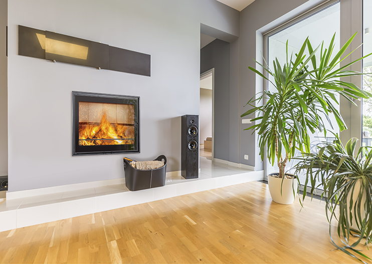 Μεγάλο γυαλί με οθόνη που επιτρέπει υπέροχη θέα στη φωτιά