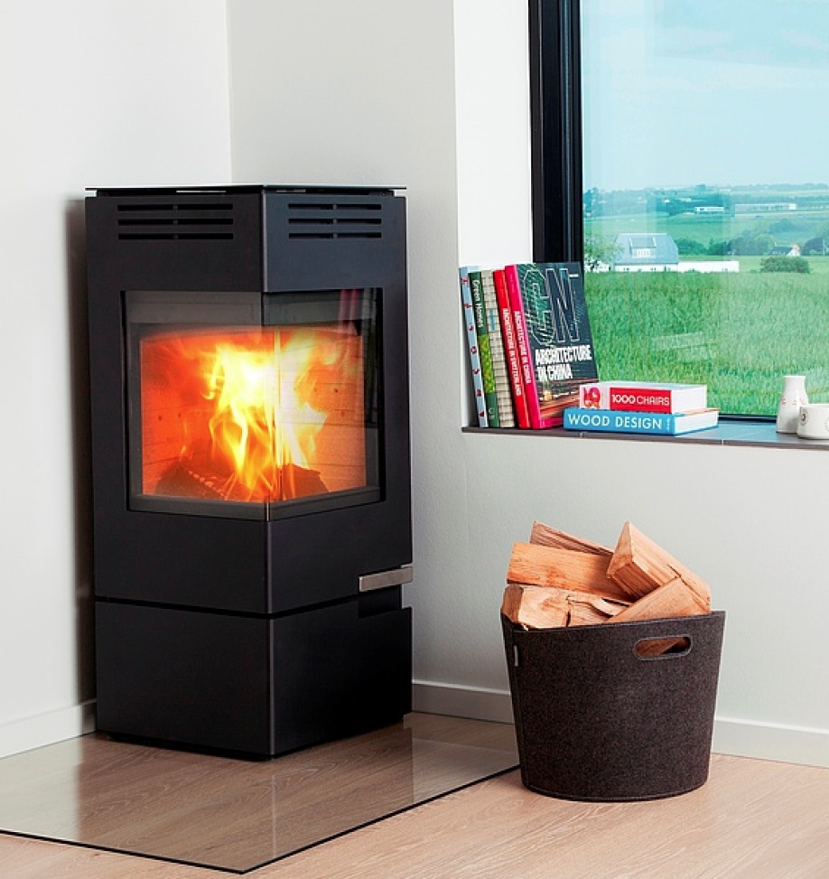 The cubist wood stove with large glass corners offers a tasteful view of the flames from many angles. Aduro 12 is the ideal corner solution. The exhaust outlet can be angled on both sides. This model is also available with a firewood storage compartment - which means the stove is better equipped than a wall-mounted one. Available in Black color. Like all Aduro stoves, it offers high efficiency combustion, with primary, secondary and tertiary supply of fresh air. It is particularly easy to use thanks to the automatic Aduro-tronic system that regulates the air supply for maximum economy and performance.