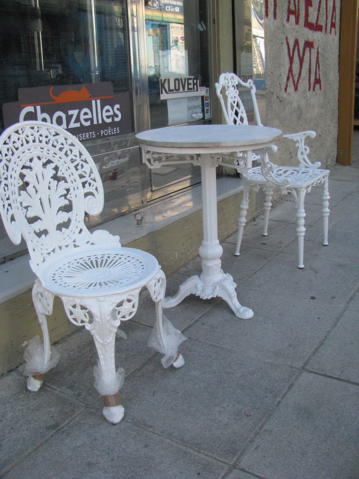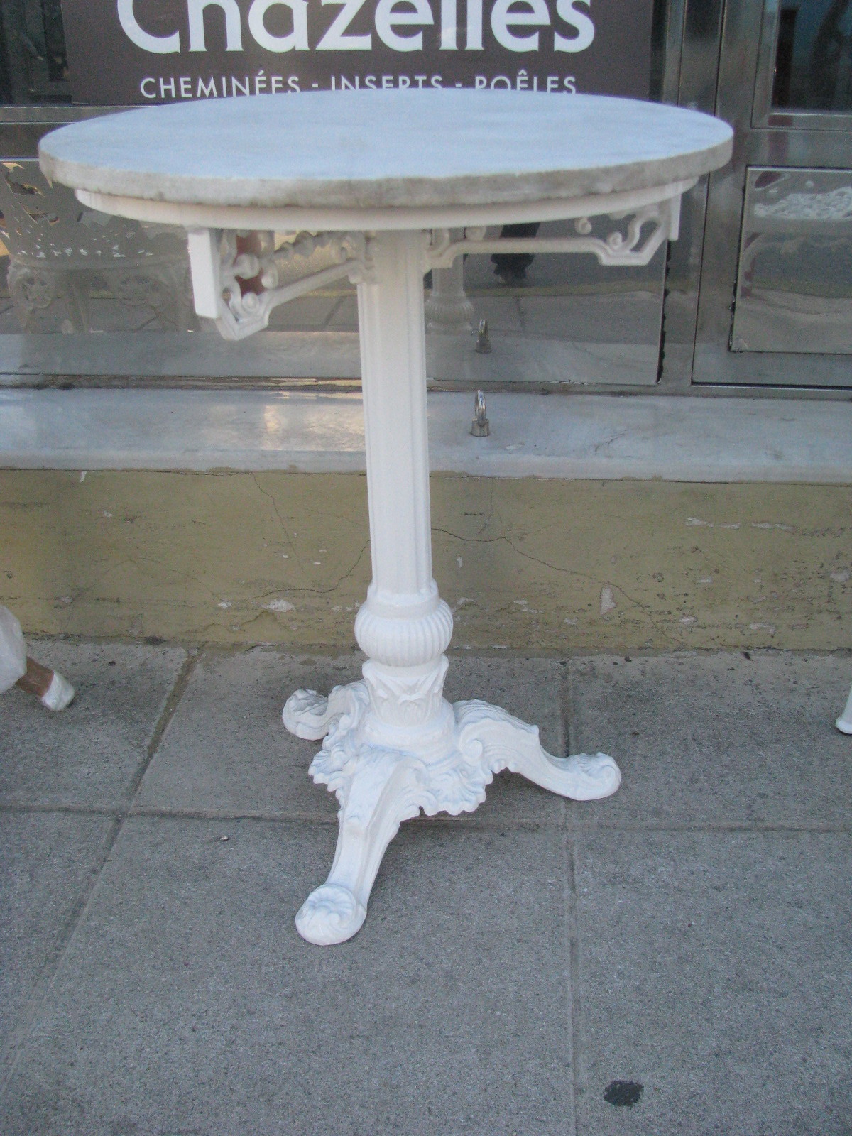 Classic traditional form of excellent aesthetics in a cast table with a single column base that ends in three support legs exactly below the surface of the table, there are per 120° three reliefs traditional performances that exceptionally decorate the table. It can take and support surfaces such as marble, glass, crystal, granite from 60 cm, 70 cm to 80 cm, from 2 cm to 3 cm thick, combined with metal chairs or cast armchairs. The lifespan is unlimited because they have undergone a special treatment and are painted with electrostatic paint